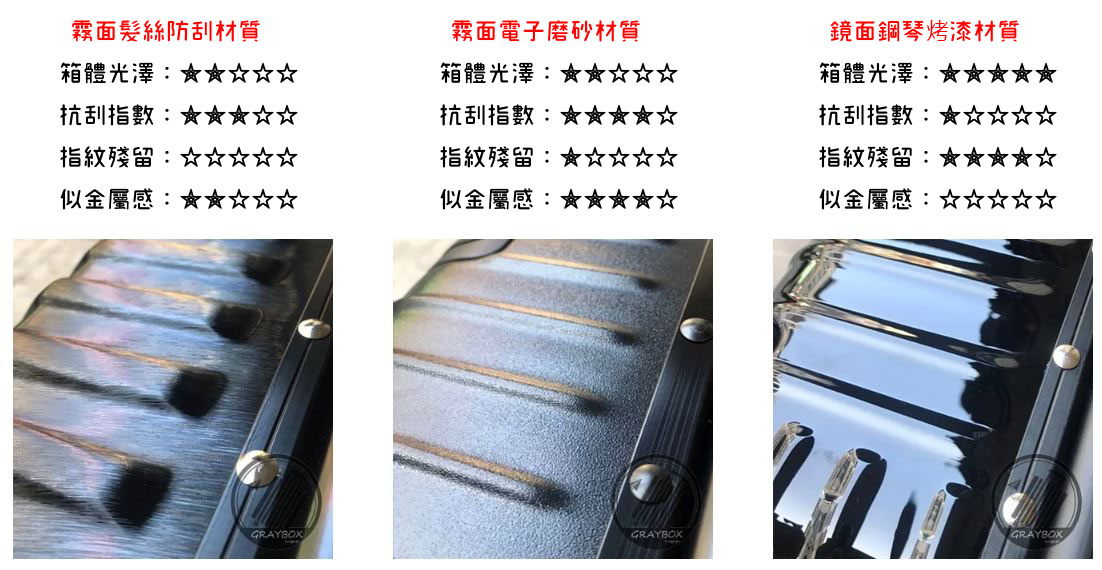 本賣場商品皆採用ABS+PC的材質(號稱軟鋼板),結合ABS與PC聚碳酸酯兩種材質的特性及優點,ABS高硬度高強度加上PC的耐冷熱及高韌性,PC亮面材質外觀質感較佳韌性延展性高,也是目前主流品牌採用最廣的材質。所以第一次接觸這個材質可能會覺得比一般ABS薄但其實韌性相對是比較高的。